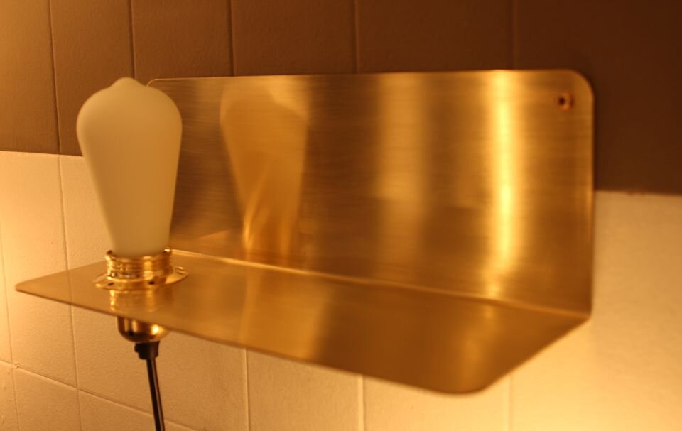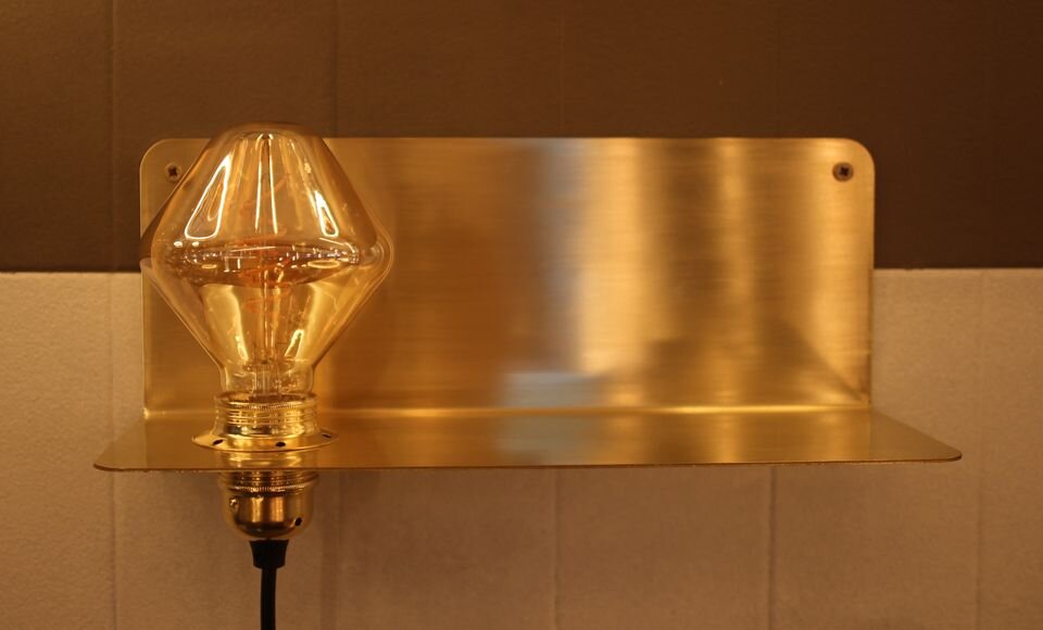 Wall Lamp / Light made with brass. Simple and Elegant. By your bed side or in that small space... E27 Lamp holder in "brass" finish. Plastic 2 metre cable with switch and European plug. All components are Made in EU. We use natural brass which ages and gains a natural patina with time. Light Bulbs Not Included.