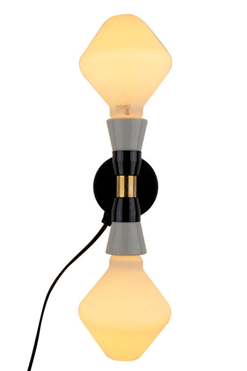 - Materials & finishes Natural brass, ceramic and thermoset.